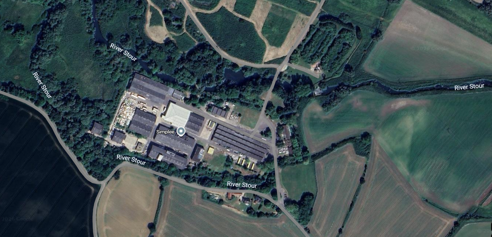 The estate is on the low-lying land close to the River Stour. At the presnt time the access to the site is via a very small road north from Liston and Rodbridge. If the site were to be re-developed an access from the A1092 would probably be needed. The A1092 was the location of the former Philips Avent factory in Glemsford, Suffolk.